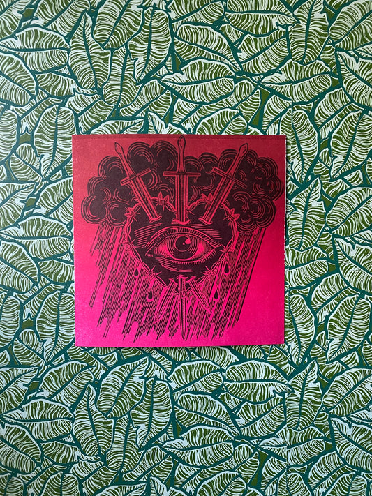 3 of Swords Linocut Print