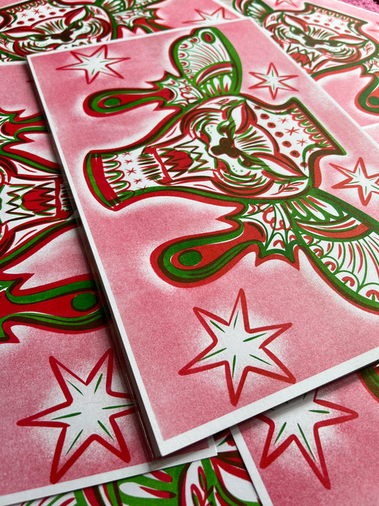 Winged Cat Vase Riso Print